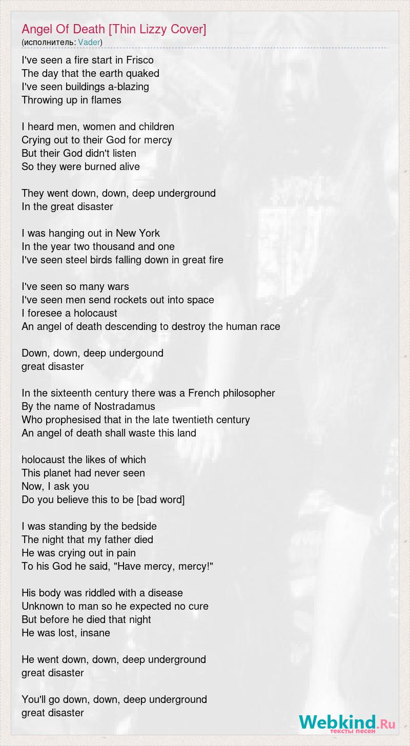 А как ты думаешь, о чем песня "Angel Of Death [Thin Lizzy Cover]" ?