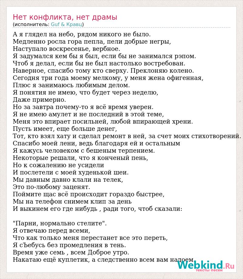 А как ты думаешь, о чем песня "Нет конфликта, нет драмы" ?