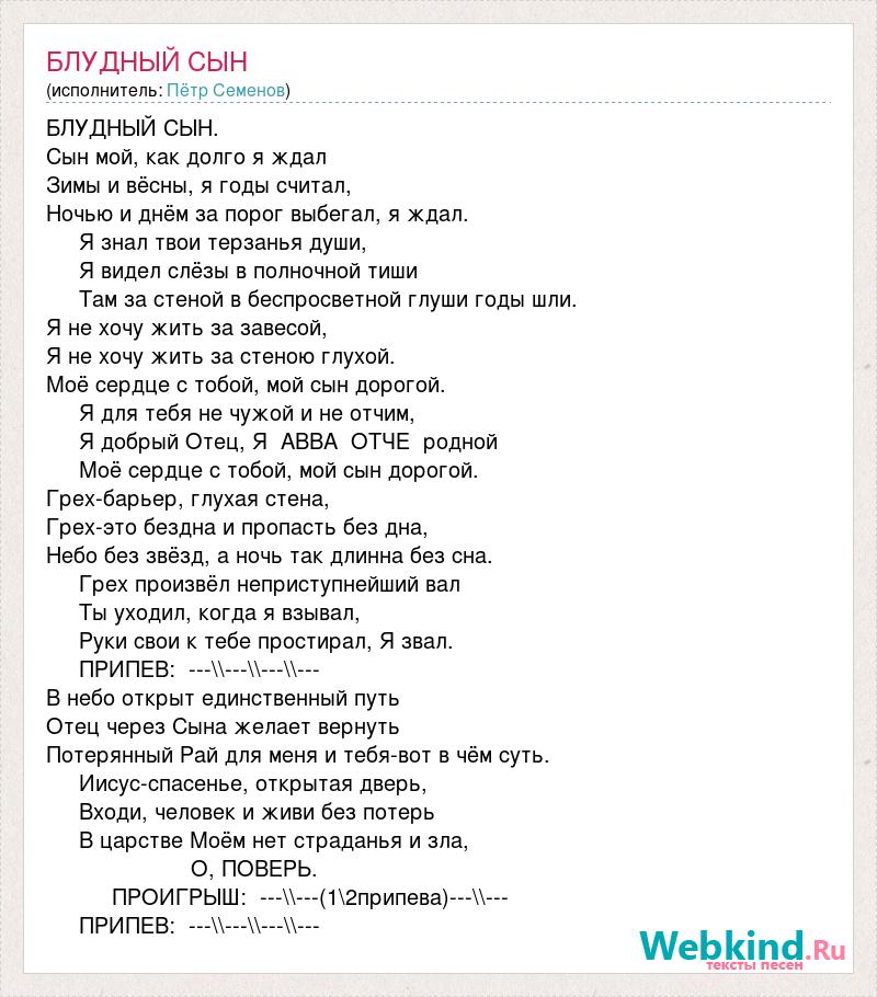 А как ты думаешь, о чем песня "БЛУДНЫЙ СЫН" ?