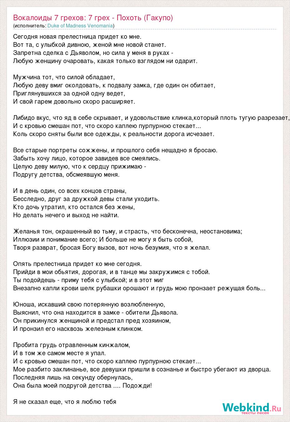 А как ты думаешь, о чем песня "Вокалоиды 7 грехов: 7 грех - Похоть (Гакупо)" ?